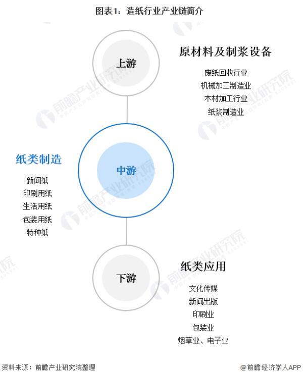 造纸行业的产业链从上游到下游依次可划分为:原材料及纸浆设备、纸类制造和纸类应用。