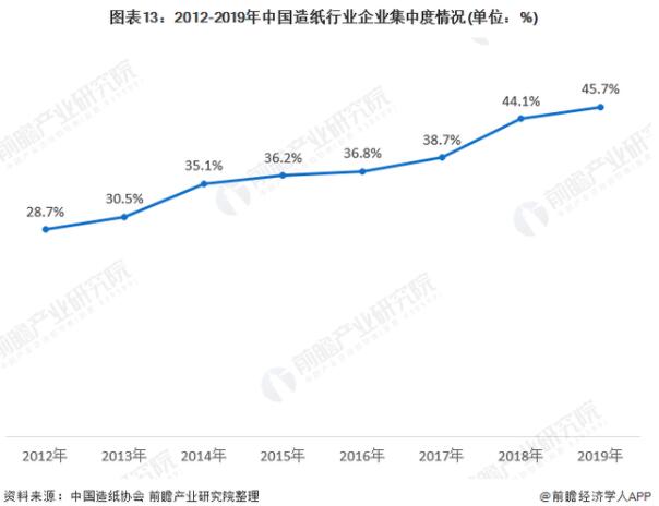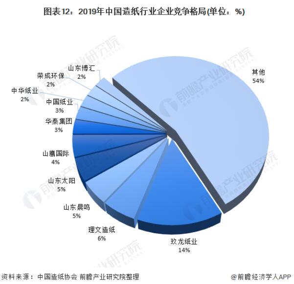 相对于纸浆制造行业而言,我国造纸行业企业数量偏少,根据国家统计局统计,2019年全国纸及纸板生产企业约有2500家,行业集中度偏低,产品质量差异较大。